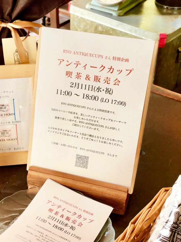 当日は喫茶でお使いいただくカップをはじめ、テーブルにも貴重で美しい品々が並びます。
