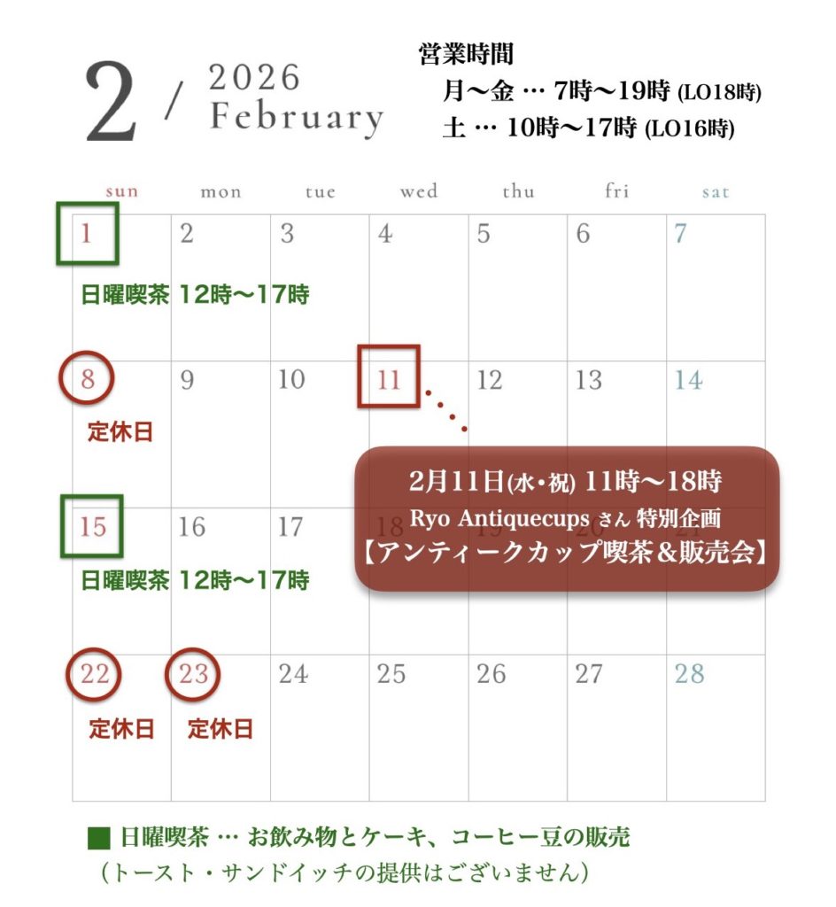 2月も、喫茶店やコーヒーが日々のお役に立てば幸いです。